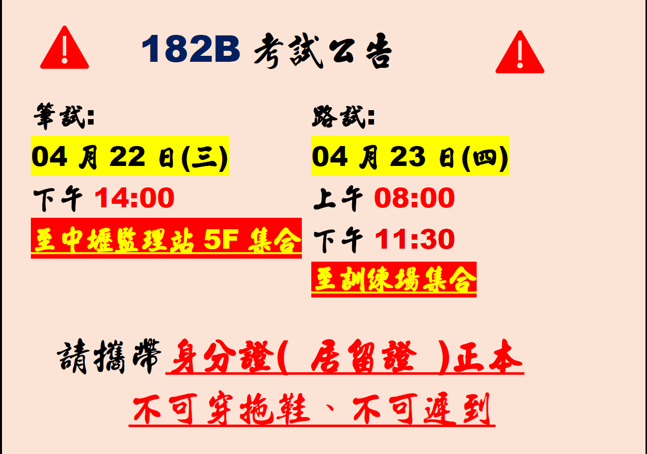 182B期考試公告